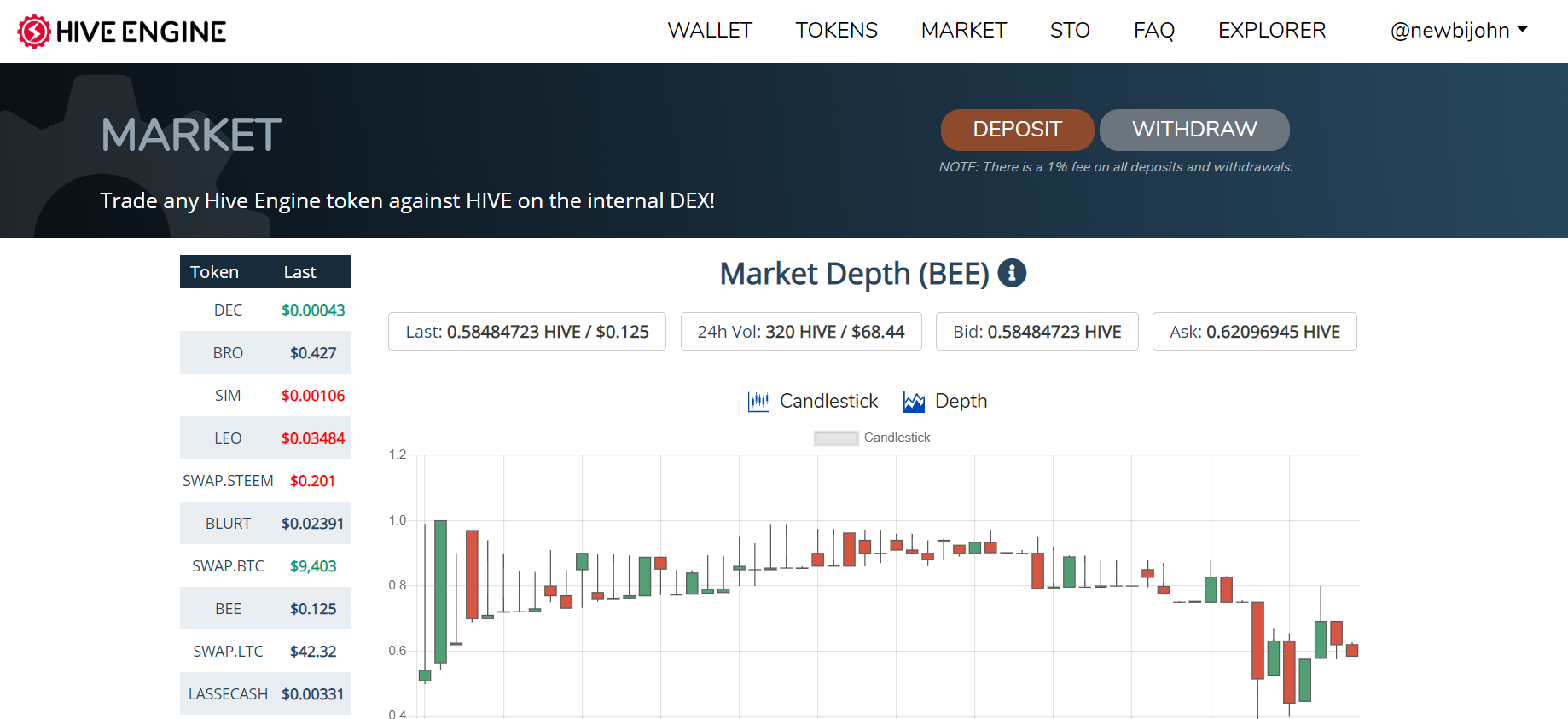 하이브엔진에서 거래를 하면 바로 저 BEE라는 심볼의 토큰으로