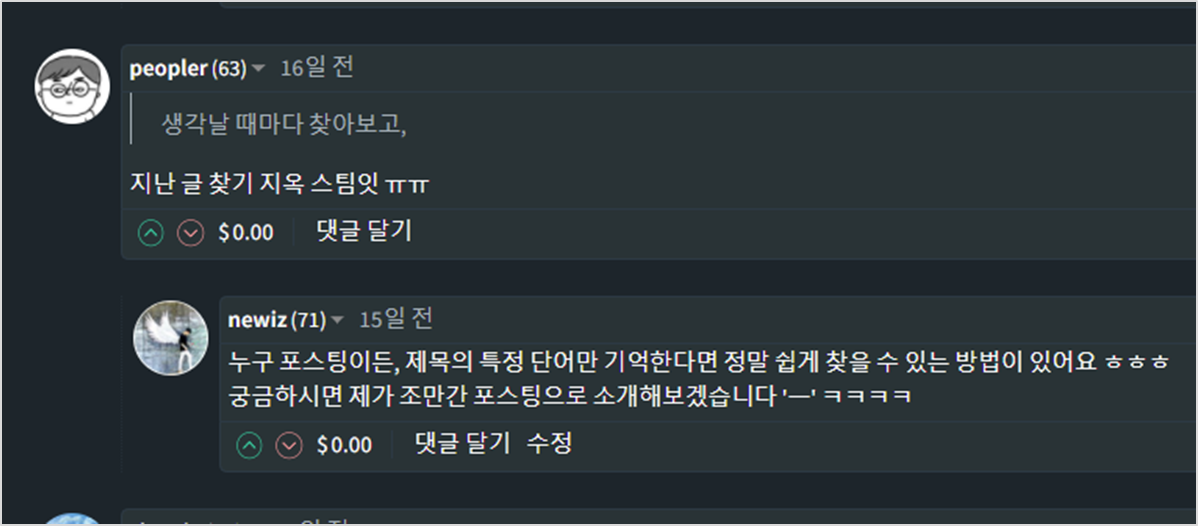 이런 스팀잇 검색의 작은 희망이 있으니,