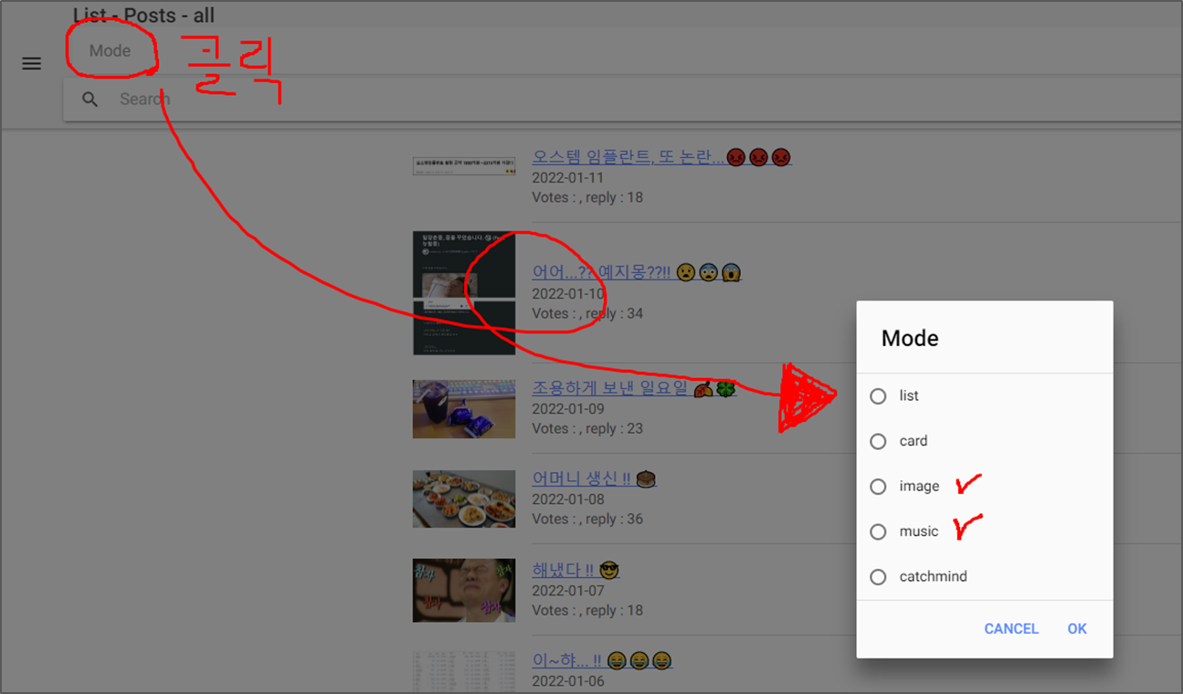 바로, 사진들만 모아보기 / 음악들만 모아보기 이다.
