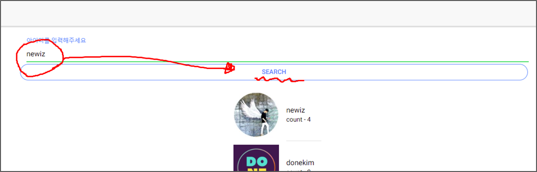 영차영차 newiz를 입력하고, SEARCH 버튼 클릭!!