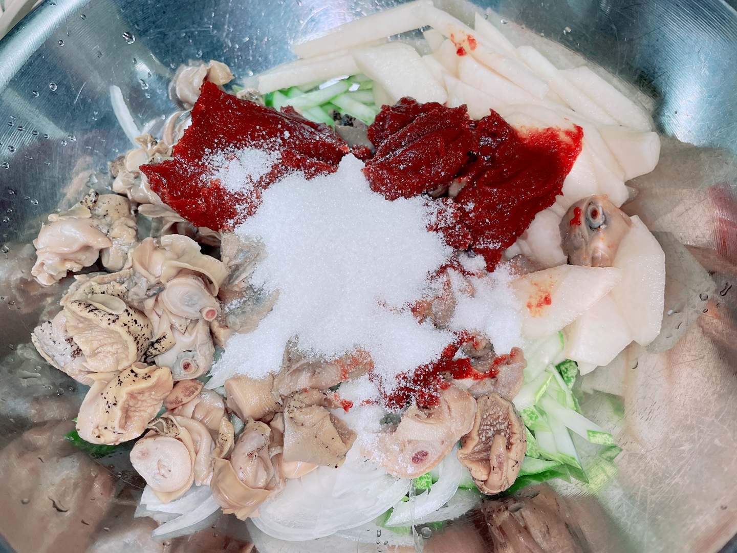 양념은 다른 것 필요없고, 고추장과 설탕만 있으면 됩니다.