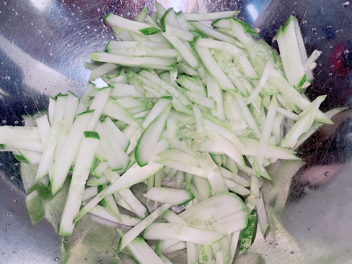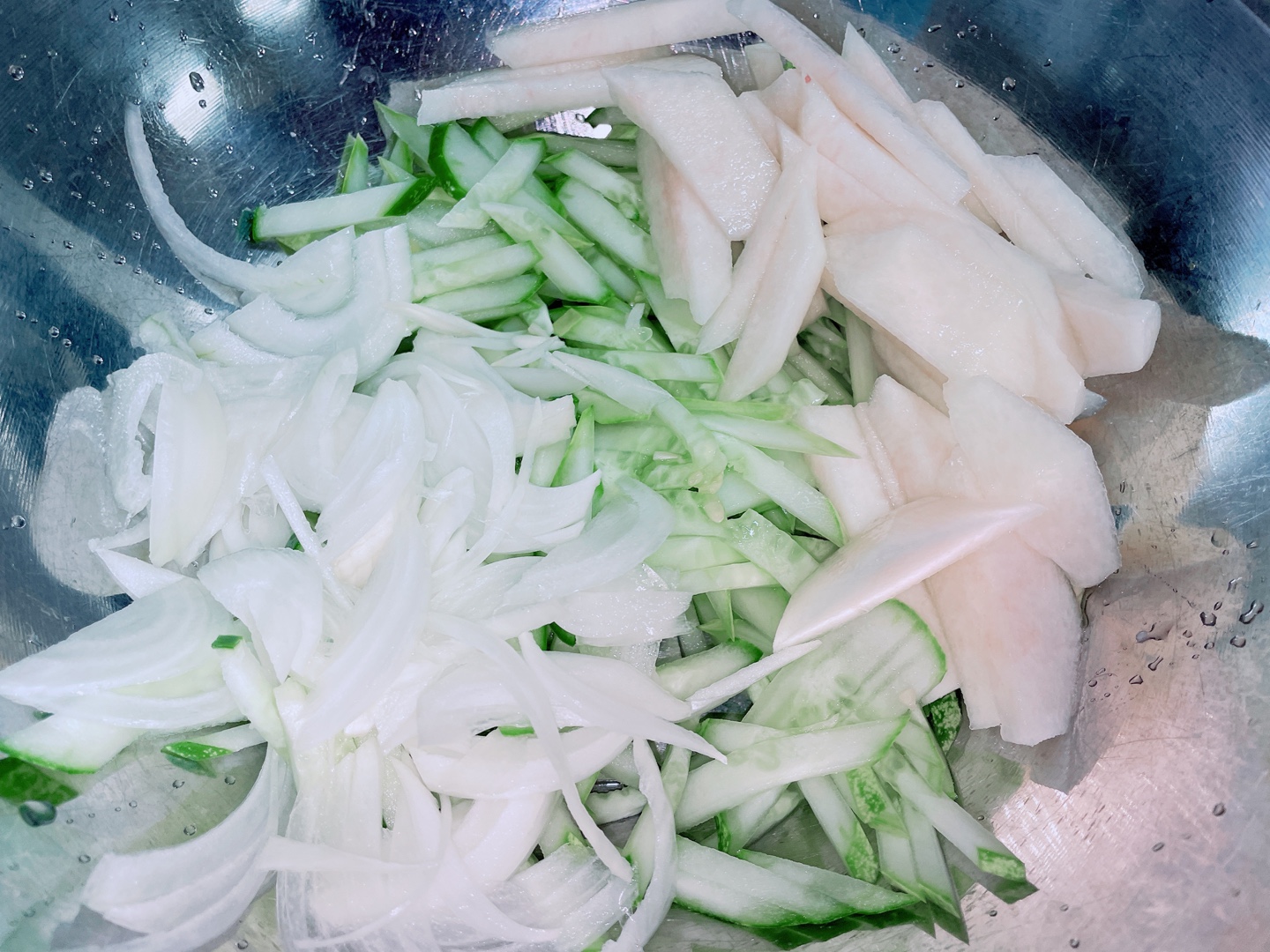 그리고 잘게는 아니고 오이보다 3배 가량 두껍게 썰어줬습니다.