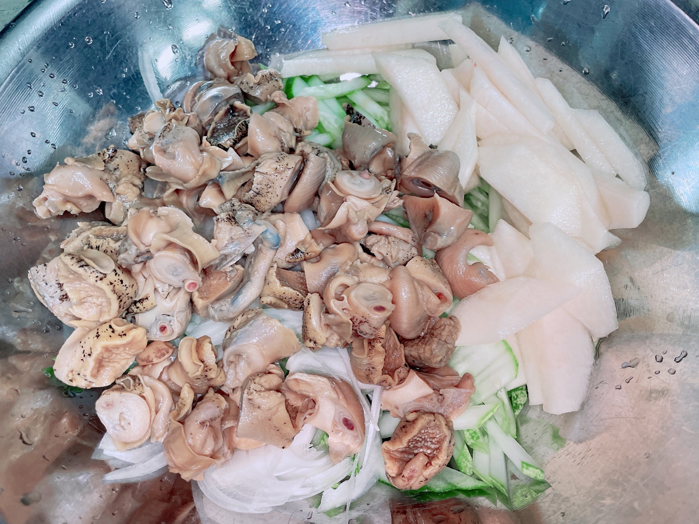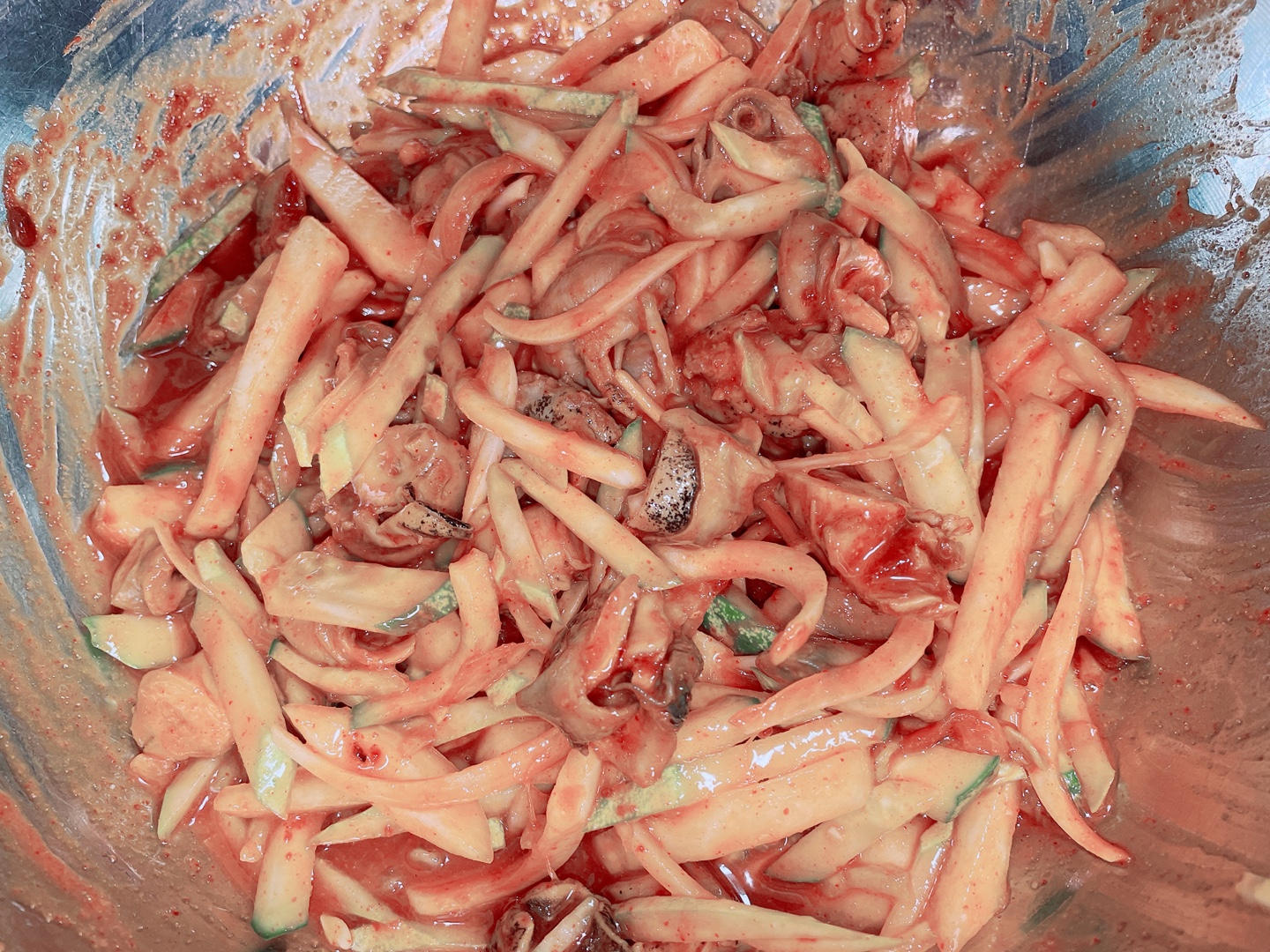 그리고 마지막으로 골뱅이를 잘라서 넣어줬습니다.