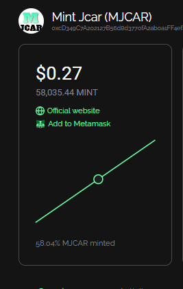 Mjcar는 Mint.club 에서 발행하는 토큰이며, @jsquare 님이 운영하시는 여러가지 프로젝트 중 Mjcar 유료보팅에 참여하실 수 있습니다. 이번 Mjcar 유료보팅은 마감이 되었고, 향후 다시 시작되면 알려드리겠습니다