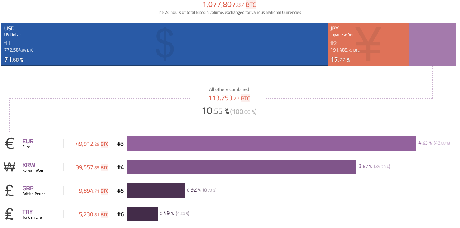 (2017년 11월 20일 각 통화별 BTC 거래 점유율 - https://www.coinhills.com/)