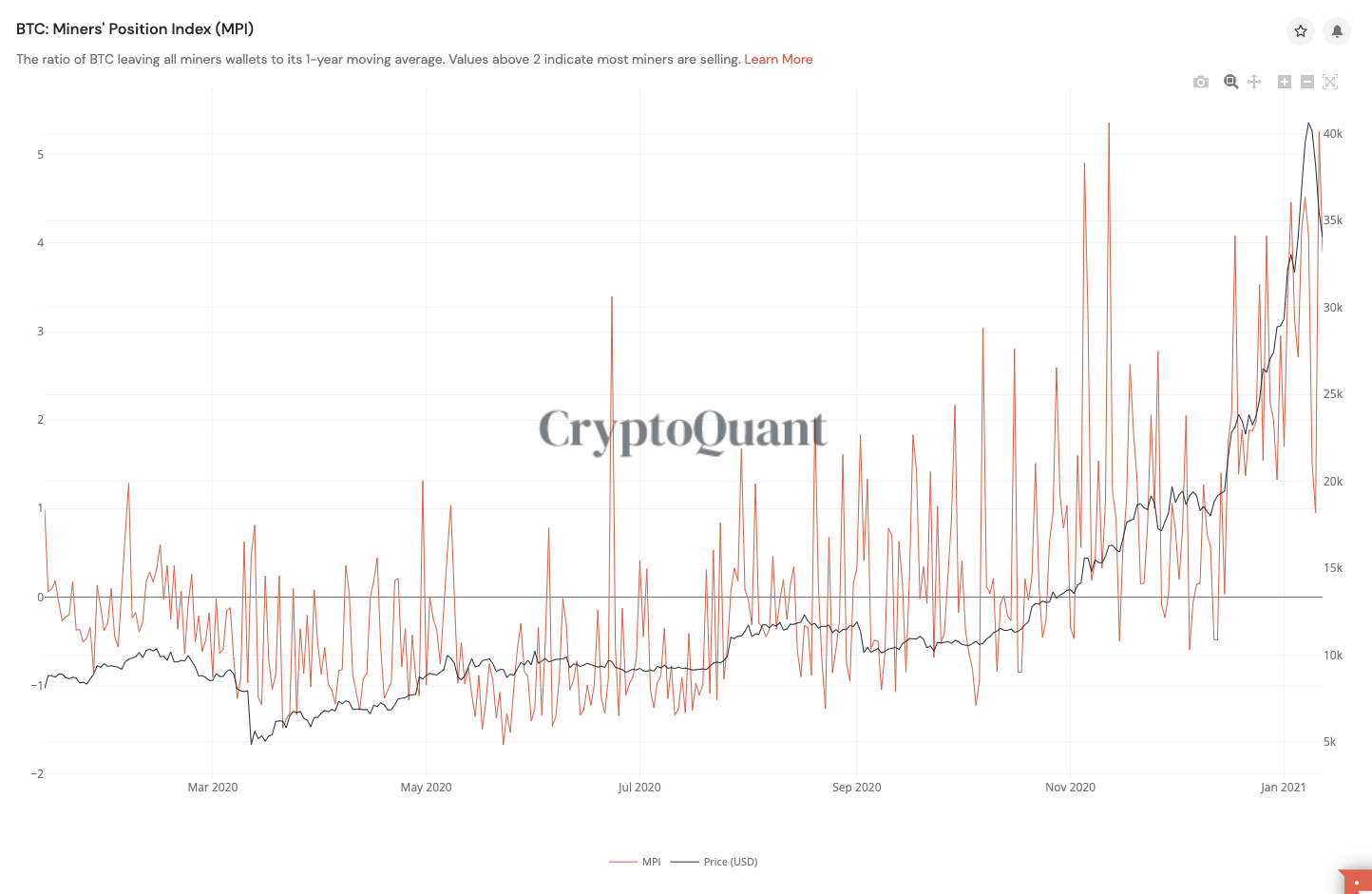 (MPI 최근 반년간 추이 - https://cryptoquant.com/overview/full/199?window=day)