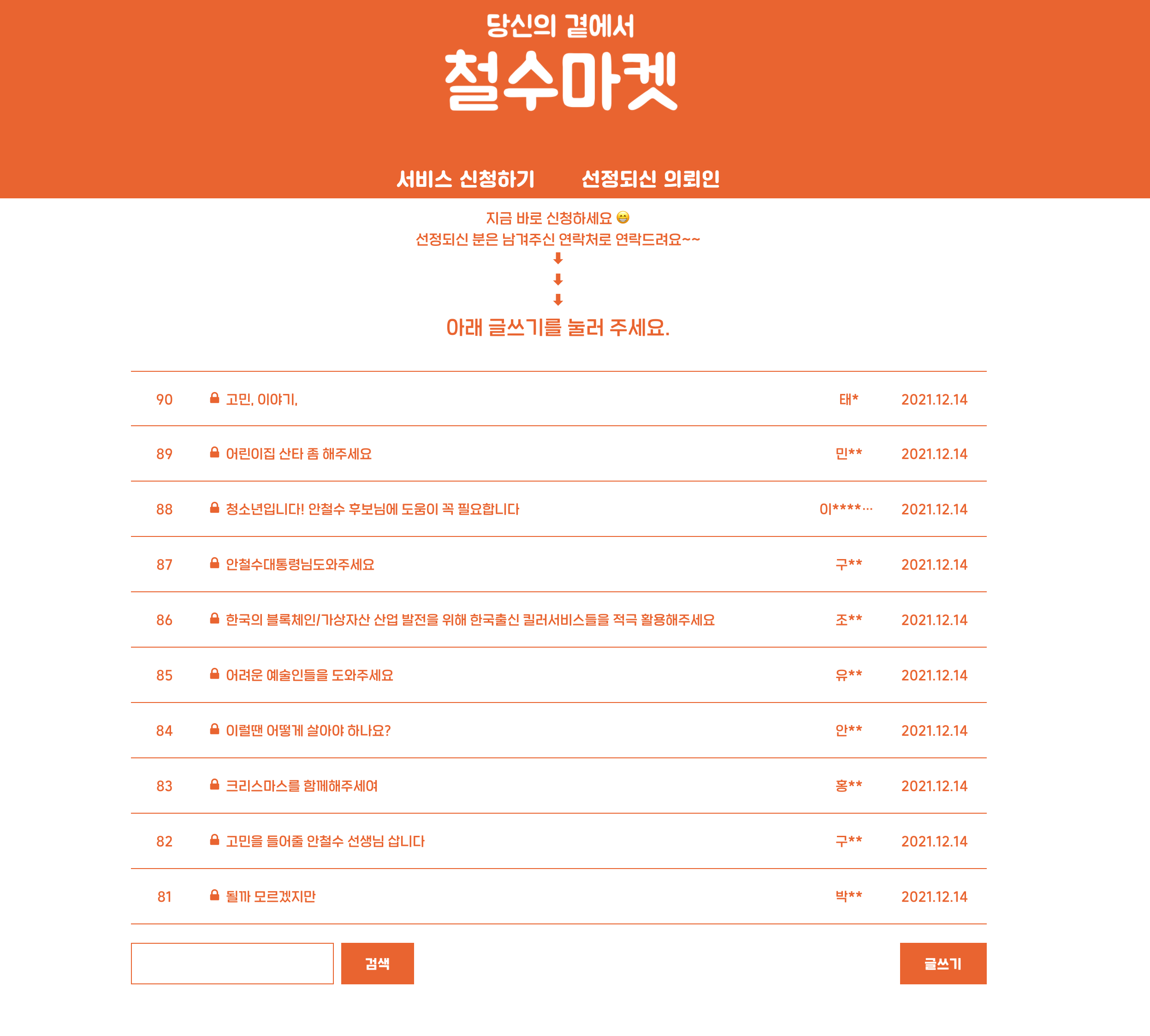 대선이 이재명-윤석열 양강 진흙탕 정국으로 치닫고 있는 와중에 안철수 후표는 철수마켓 이라는 재밌는 사이트를 런칭했더군요.
