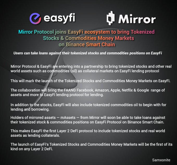 Mirror Protocol Recently joined #EasyFi ecosystem to bring Tokenized Stocks & Commodities Money Markets on #BinanceSmartChain