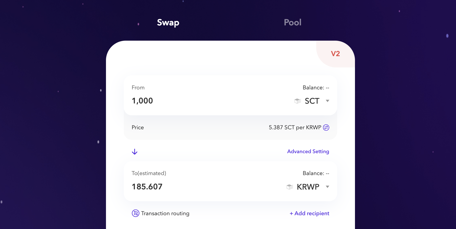 - (예시) SCT를 STEEM으로 바꾸려는 경우 : SCT -> KRWP로 1차 스왑 / KRWP -> STEEM으로 2차 스왑