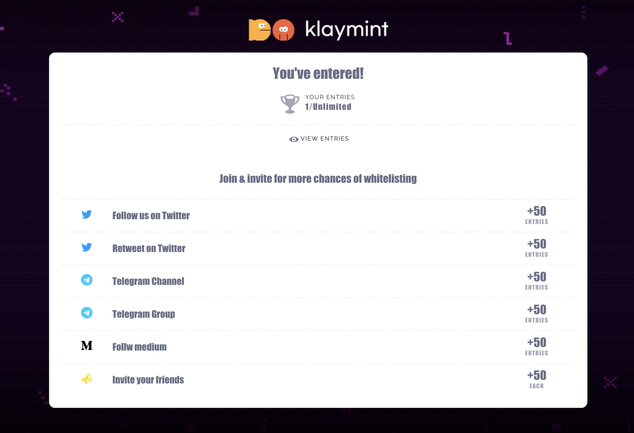 클레이민트(Klaymint) 에어드랍 화이트리스트 신청 해두세요!