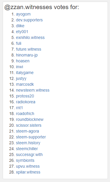zzan.witness 계정에 증인 투표 위임 중입니다. ^^