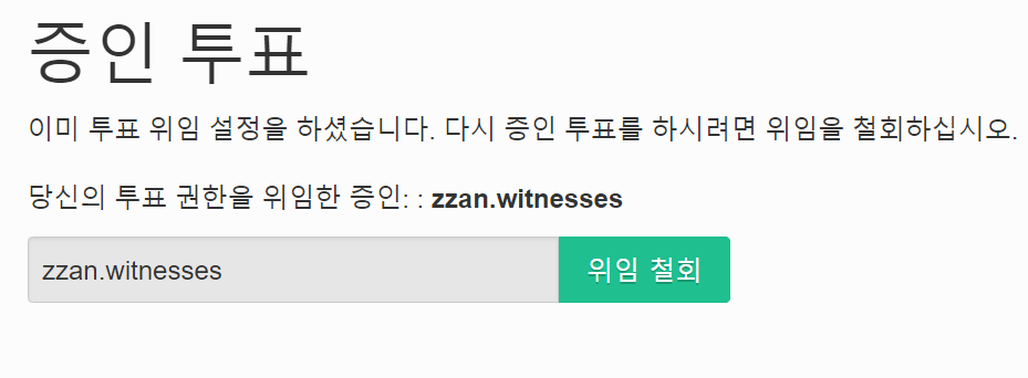 저도 zzan.witness계정에 증인 투표 위임중인데요…