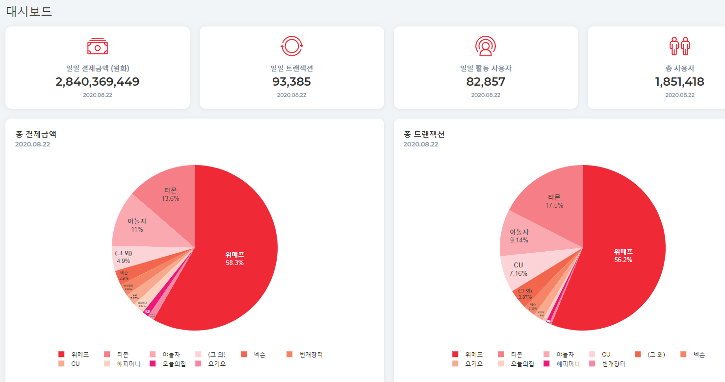 일 28억 정도 사용하고 있군요. 결제 시장의 규모를 생각하면 아주 적어 보입니다. 아무래도 모사의 pay가 너무 막강하기 때문에 시장 점유율을 올리기가 쉽지는 않을 겁니다. 하지만 암호화폐 기반의 간편결제 서비스로는 적다고는 할 수 없을 것 같습니다. 관련 암호화폐의 가격 상승까지 염두에 둔다면 앞으로 성장 가능성은 커 보입니다.