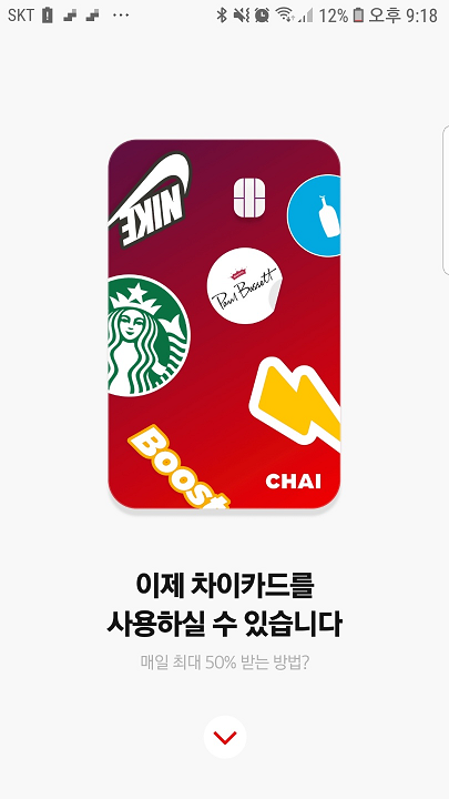 이미 설치한 chai앱에 카드를 등록하였습니다.