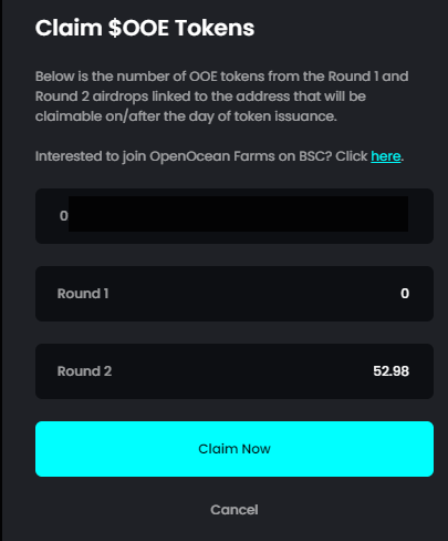 OpenOcean에서 $400불 이상 swap을 한 사용자를 대상으로 airdrop이 되었다는 글을 봤습니다. 긴가민가 하면서 접속해보니 airdrop이 나왔군요. 아마도 최초 airdrop 이후에 그 다음 airdrop 받으려고 조건을 맞추었던 기억이 나긴합니다.