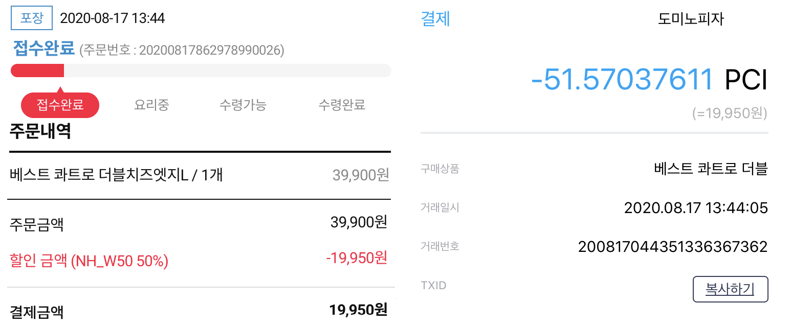 - 추가로, 오늘 페이코인으로 결제하시고 이 글에 댓글로 주문내역+결제내역+피자인증(*피자사진 찍을 때 손가락 따봉👍과 함께 찍어주세요.) 해주시면 총 3명에게 할인 받으신 금액의 금액의 30%를 PCI로 페이백 해드리겠습니다.