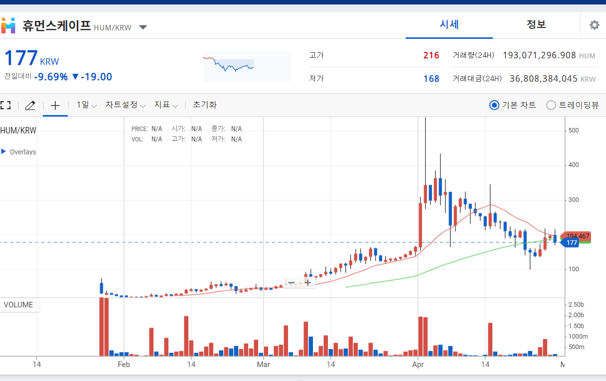 결제용은 아닌데도 차트를 보면 몆원에 상장되어 500원까지도 치 솟았다가 현재 176원정도 하지요.