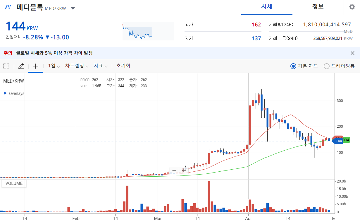 몆원으로 시작해서 400원 치솟았다가 지금은 144원이니 이또한 몆백배 오른거지요. 의료분야의 코인들의 미래는 정말 기대됩니다. 죽고싶은 사람은 없기 때문입니다. 저는 메디블럭도 조금씩 사 모으고 있지요. 가치가 분명하기에 앞으로 더 오를걸 기대합니다.