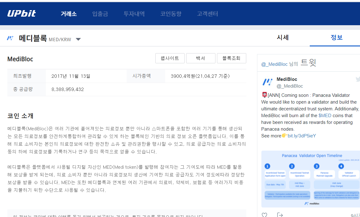 메디블럭 마찬가지로 의료분야 흩어진 정보를 안전하게 통합하고 의료의 여러분야에 이롭게 쓰여질 것이고 의료비, 약제비, 보혐료 비용을 지불하기 위한 수단으로 사용될 코인이지요.