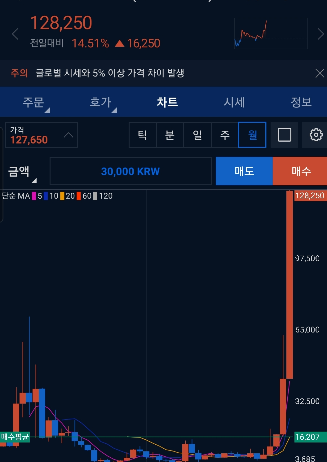에서 언급했던 것처럼 12만원 돌파가 나와줘서 분할익절 후 관망중..