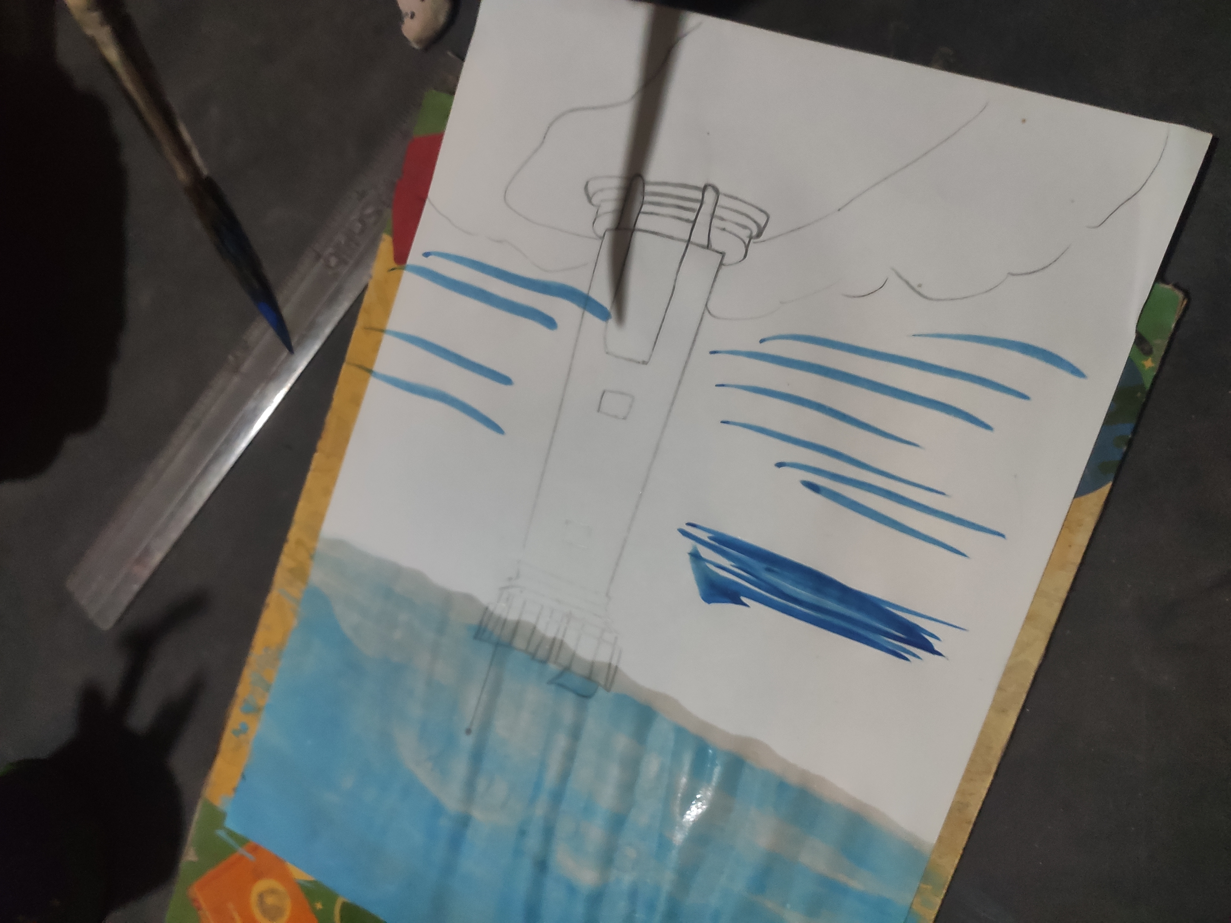 এবার লাইট হাউস টি পুরোপুরি আঁকব।এখানে মুলত লাইট হাউস টি আসল।