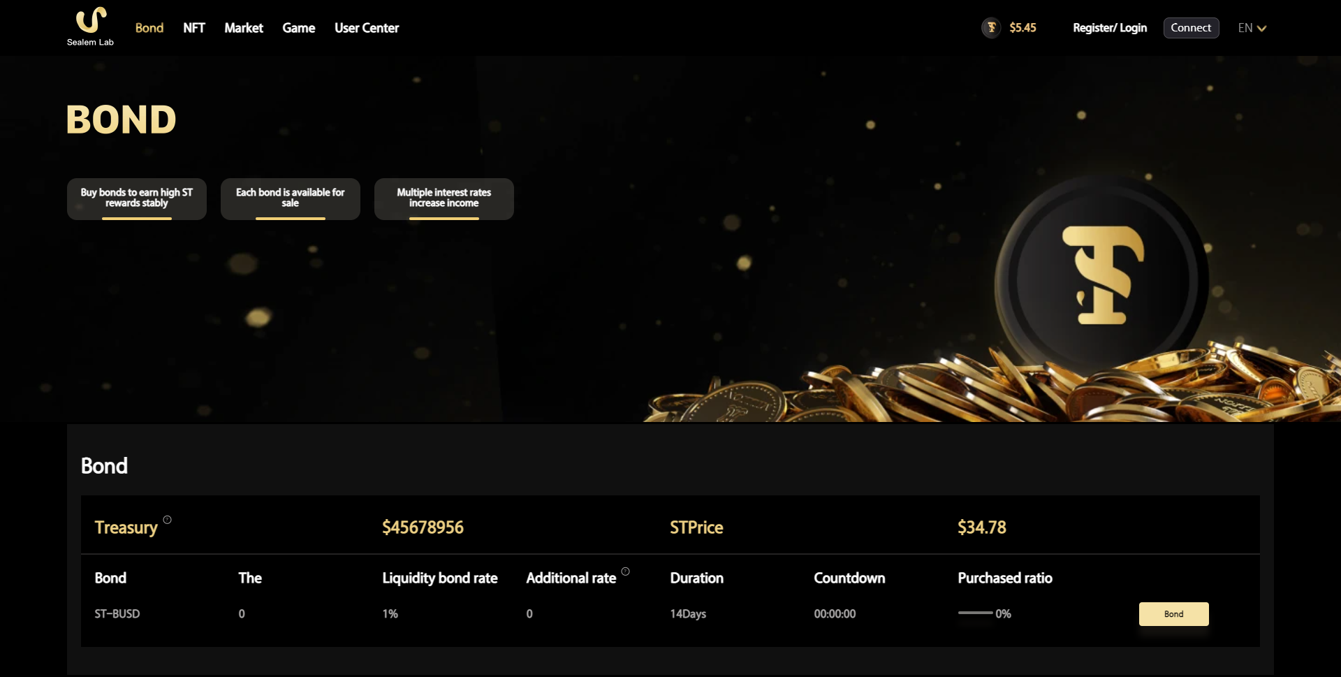 Silem Platform creates a new generation of DeFi + Gamefi protocols. Join the leadership to earn ST tokens by purchasing bonds and stacking and stacking various high-quality games on the platform to earn game tokens. Profitability will be maximized by connecting the parts together.