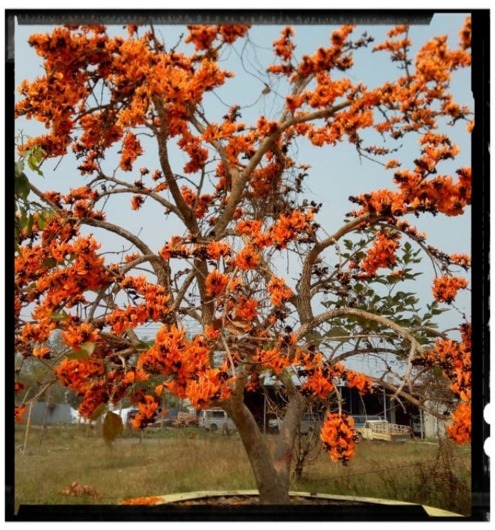 A tree of plash flowers..