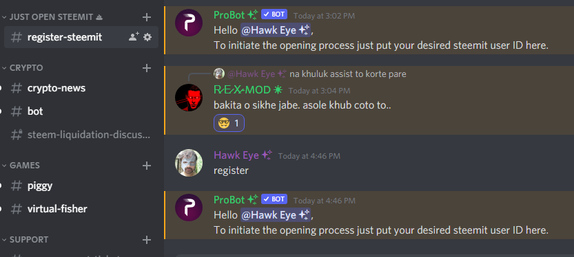 ২. Just Open Steemit ♨ ক্যাটেগরির ডিসকর্ড চ্যানেল register-steemit এ ঢুকুন ।