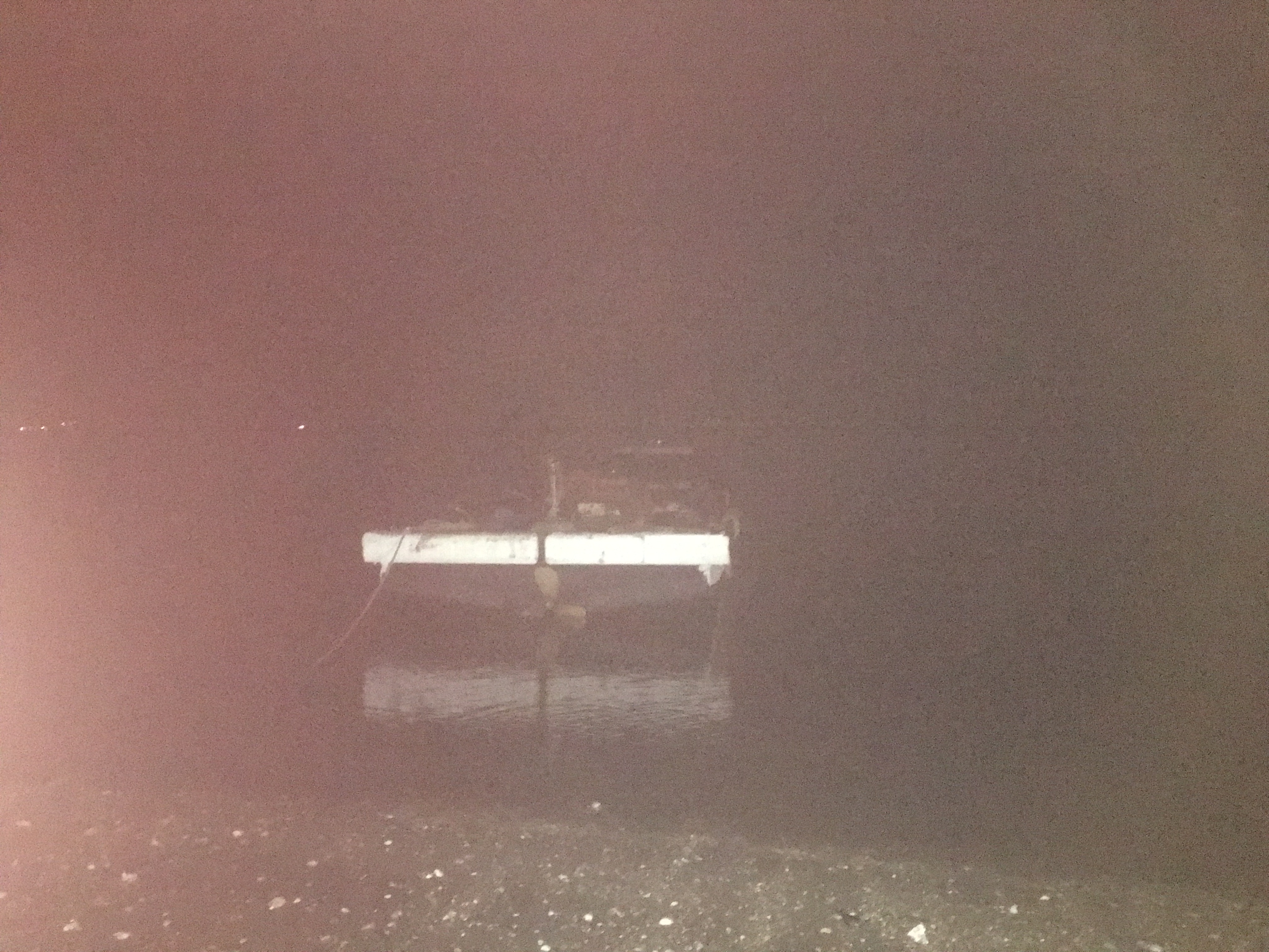초저녁, 득량만 앞은 배들의 불빛이 가득했는데, 지금은 달이 뚱뚱해져 옆에 별들의 빛을 가리운다.