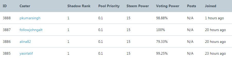 Today Members joined on shadowbotshadowboot (43)in #shadowbot • 8 years ago Total Shadow Casters: 2380 Pool Steem Power: 398,092 Shadow Casters #grandpawhale #steemit #voting #bots