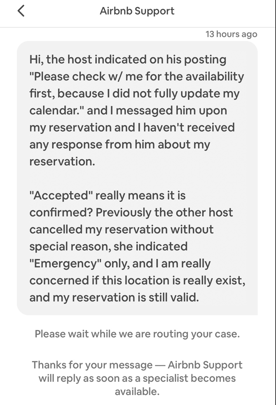 메세지를 보냈고, 그리고 얼마 지나지 않아 답장 없이 “accepted” 승인 처리가 되었으나 여전히 찜찜했습니다. 일단 지난주엔 휴일이 끼어있었으니 본인도 놀러갔겠지 싶어 며칠 기다리다가 주말이 지난 오늘, 불안감이 커져와서 고객지원센터에 연락을 취해보기로 했습니다.