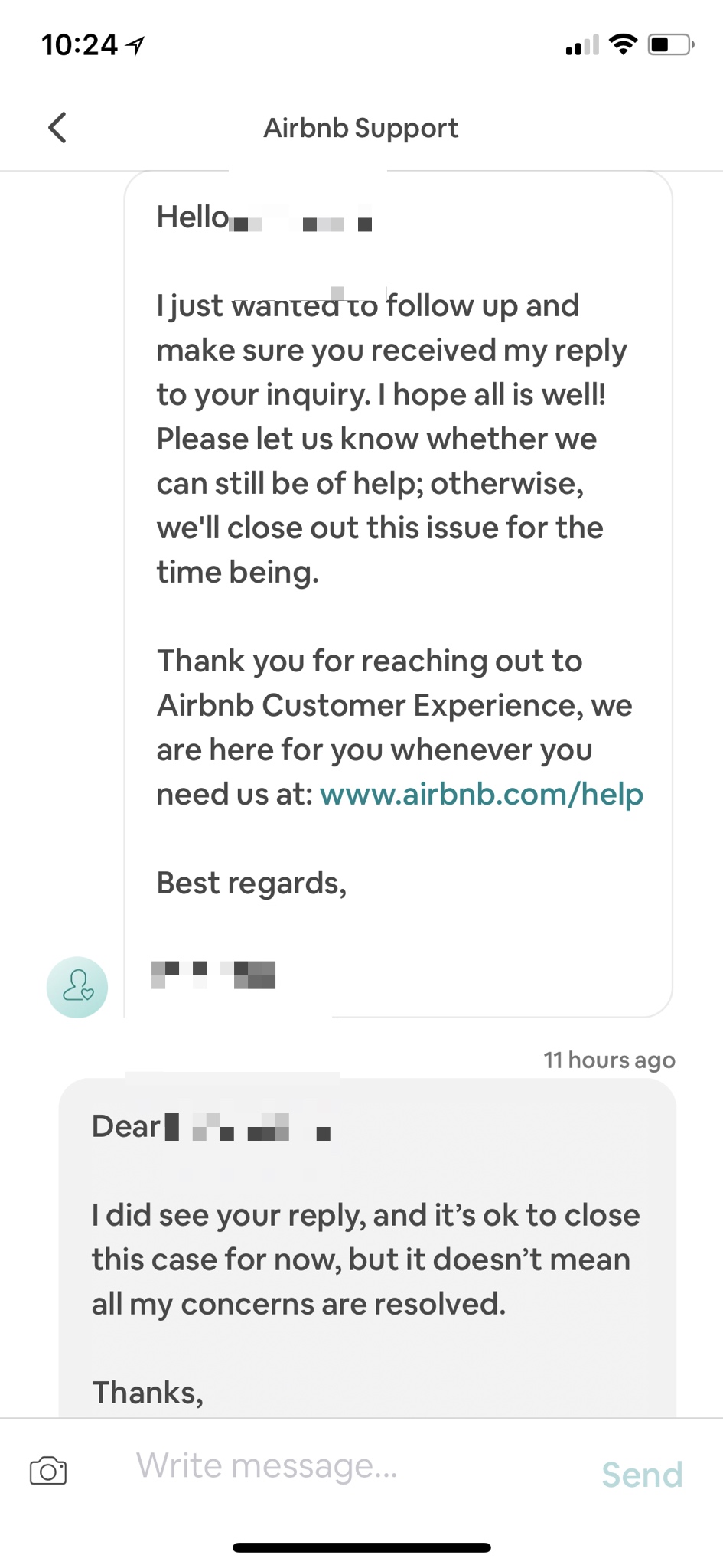 얼마 지나지 않아 답장이 왔는데 딱히 내 문제를 해결해주지는 않았지만, 일단 “특정 시점까지 연락이 없을 경우, 연락을 취해보겠다”는 구체적인 대안이 눈에 들어오네요. 그래서 일단 기다려보지 하는 마음으로 있었는데 얼마 후 이 케이스를 닫아도 되겠는지 묻는 연락이 다시 왔어요.