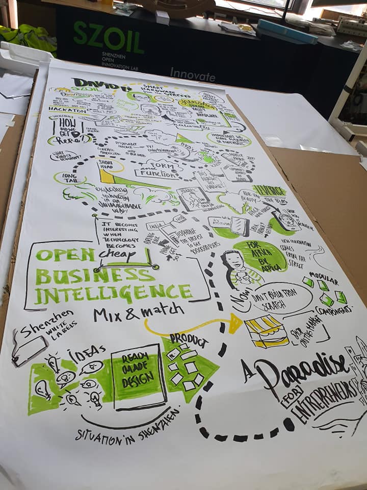 심천 오픈 이노베이션 랩에 시간에 맞추어 도착하니 스태프가 기다리고 있다가 반갑게 맞이 해 주었다. 씨드 스튜디오와는 심천의 반대편에 있는 곳으로 이곳은 심천의 첫번째 메이커스페이스가 만들어진 곳이라고 했다. 팹랩 인증을 받아서 차려진 공간으로 뉴욕에 있는 메이커스페이스와 별반 달라보이지 않았다. 10명의 직원이 상주하고 있고, 대학 교육 및 스타트업 교육 등을 수행하고 있으며 유료 멤버쉽으로 운영되고 있다고 한다. 팹랩의 기계 대부분은 미국에서 수입된 것으로 이유를 물어 보았더니 맨처음 팹랩 스탠다드 가이드에 맞추느라 그리 했다고 한다. 영어로 쓰여진 일러스트가 있길래 누가 그린 것인지 물어보았더니 이곳 지역에 있는 외국인이 랩을 이용하면서 그린 것이라고 했다. 깔끔히 정리된 공간이 아닌, 지저분한 다소 정리가 안된 메이커스페이스 인걸 보면 이용하는 사람들이 꽤 있는듯 해 보였다. 그러나 역시 안전문제 등으로 정리는 필요해 보였다. 뉴욕 SVA 대학의 팹랩과 비교해 보면 안전 문제에 대해서 덜 민감한것 같았다. 멤버십제로 운영되고 있으며, 대신 SIDA 지원을 상당히 받고 있는것 같아 보였다. 프로토타입을 만들기 위한 교육과정을 대학들과 운영하거나 메이커 해커톤을 개최한다고 설명하였다.