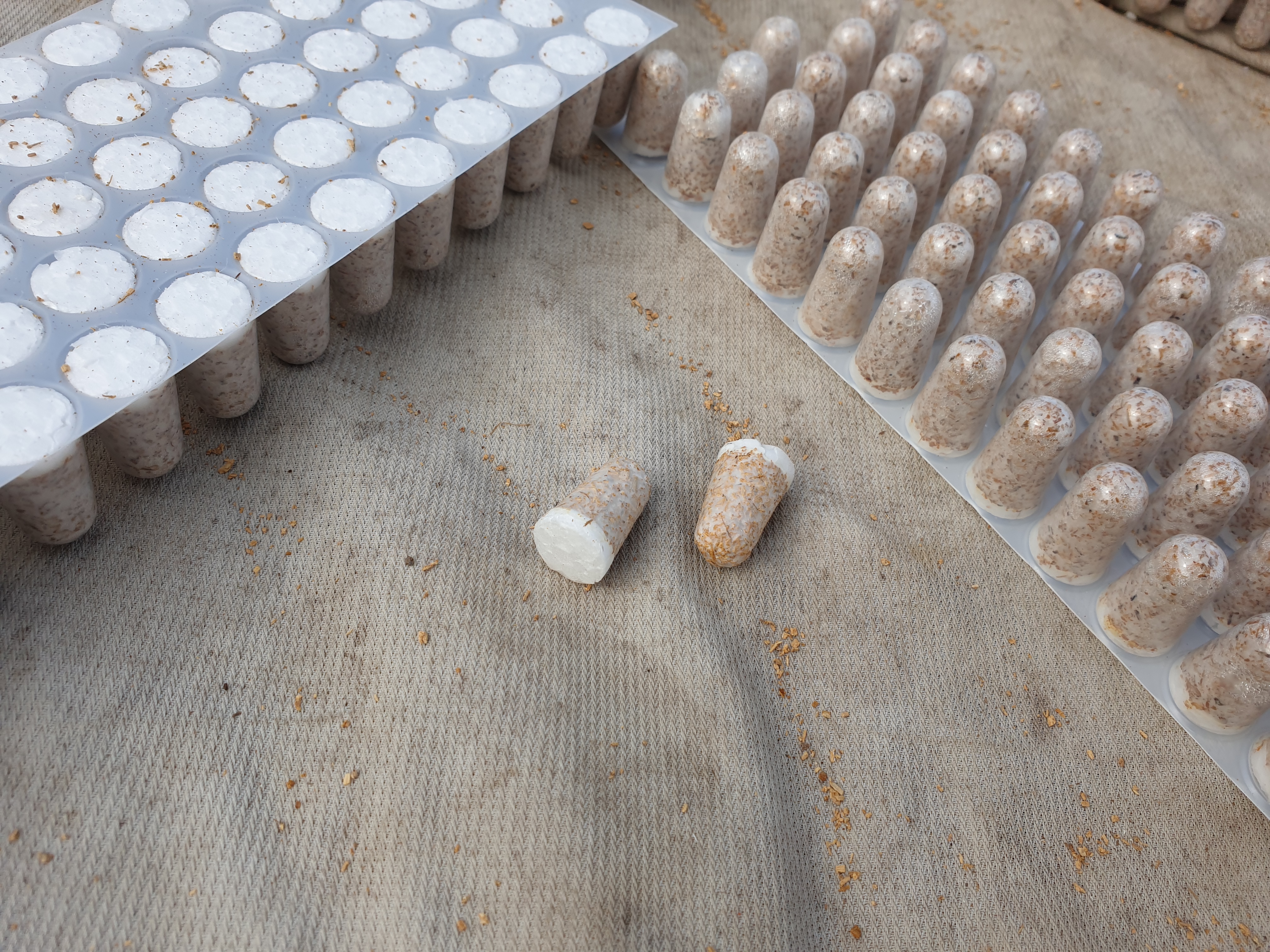 이게 바로 표고버섯 종균 약 입니다! 크기는 새끼손가락 한마디 정도?