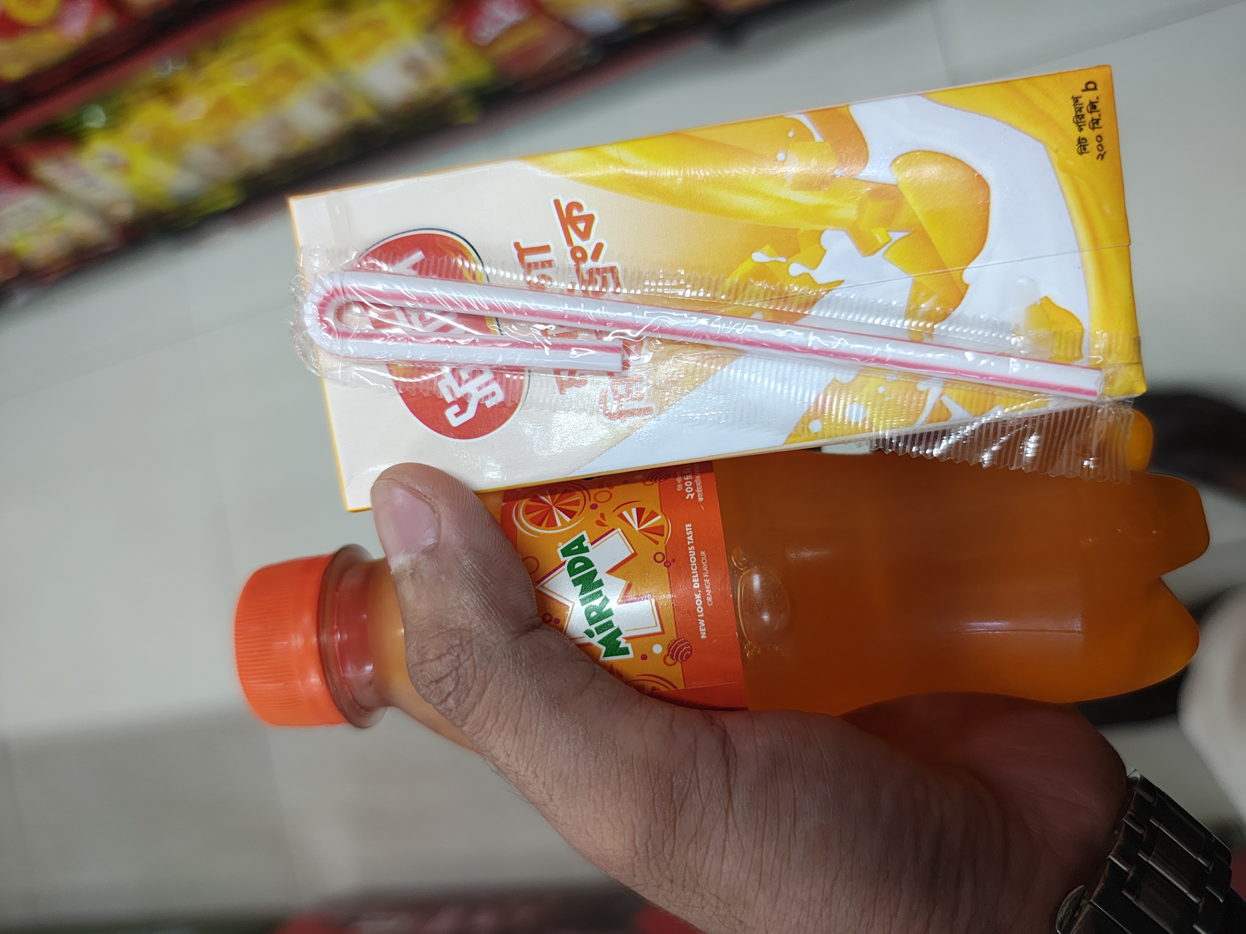 During my recent visit, I bought two products from Shwapno supermarket. Considering the hot weather outside, I was looking for something cold in the fridges and noticed Starship company’s mango milk. I bought one piece of mango milk along with a 200ml Mirinda; the total price was 55 Bdt/7.70 STEEM. No matter how cool the environment inside the shop was, I bought these products thinking about having to fight the heat once I stepped outside.