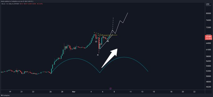 http://Haejin.com: #BTC is short term showing TWO bullish confluence of Inverse H&S and Ascending Right Triangle! And the Short Term Cycles are about to RESET IMMINENTLY!! Target is >$77k