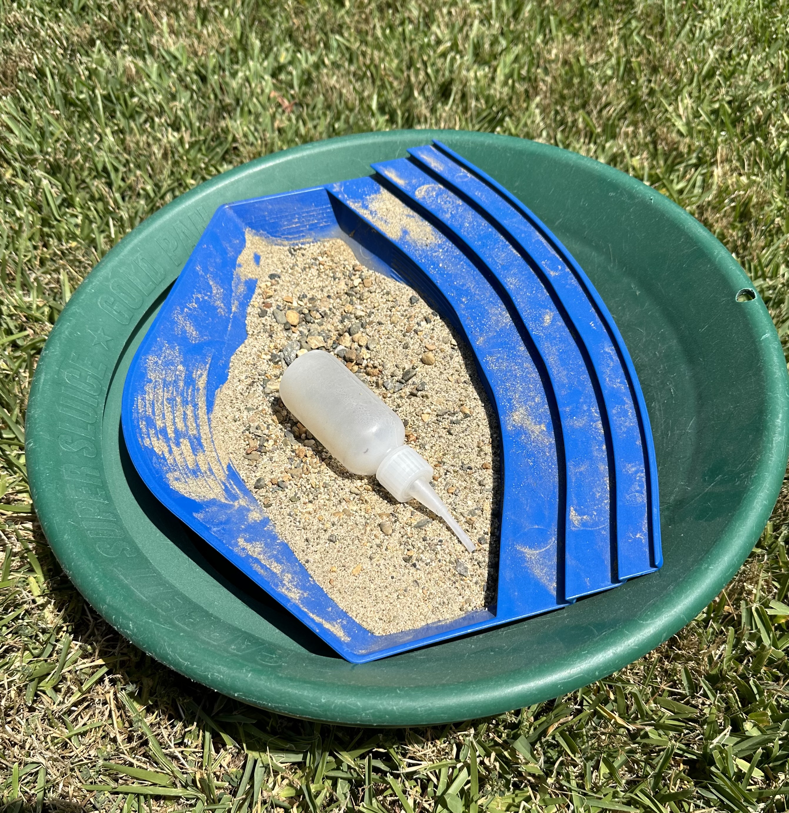 Some specks of gold in there… not too many, but better than nothing. I will say that panning out the dirt was a nice way to spend a little time in the sun.