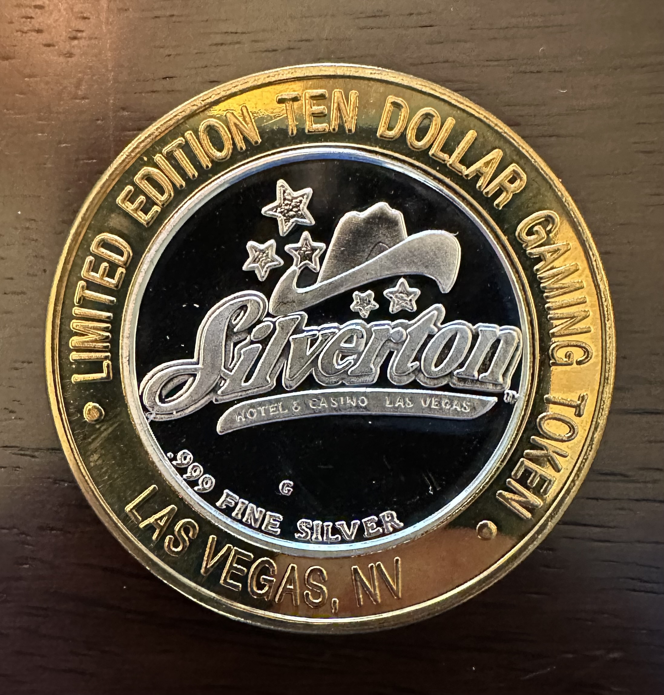 This is a 10 dollar gaming token from the Silverton casino in Las Vegas.