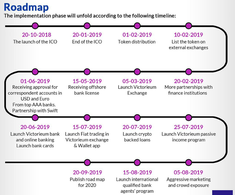 Victorium token is just the first step towards the grand roadmap of crypto-economy. As the platform advances, state-of-the-art financial tools for crypto-payments, exchanges, banking, and financial services will be available for its customers.