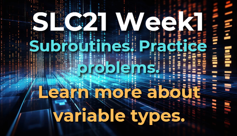 SLC21 Week1 - Learn more about variable types. Subroutines. Practice problems.