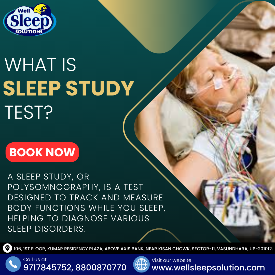 A sleep study, or polysomnography, is a test designed to track and measure body functions while you sleep, helping to diagnose various sleep disorders like sleep apnea, restless leg syndrome, insomnia, and narcolepsy. During the study, sensors are attached to monitor brain waves, heart rate, breathing patterns, oxygen levels, eye movements, and muscle activity, providing a comprehensive view of how the body behaves during each sleep stage. The test can be performed overnight in a sleep lab, where a specialist closely observes and records any sleep disturbances, or at home using simpler equipment primarily to screen for sleep apnea. Afterward, a sleep specialist reviews the recorded data of a sleep study test in Delhi NCR