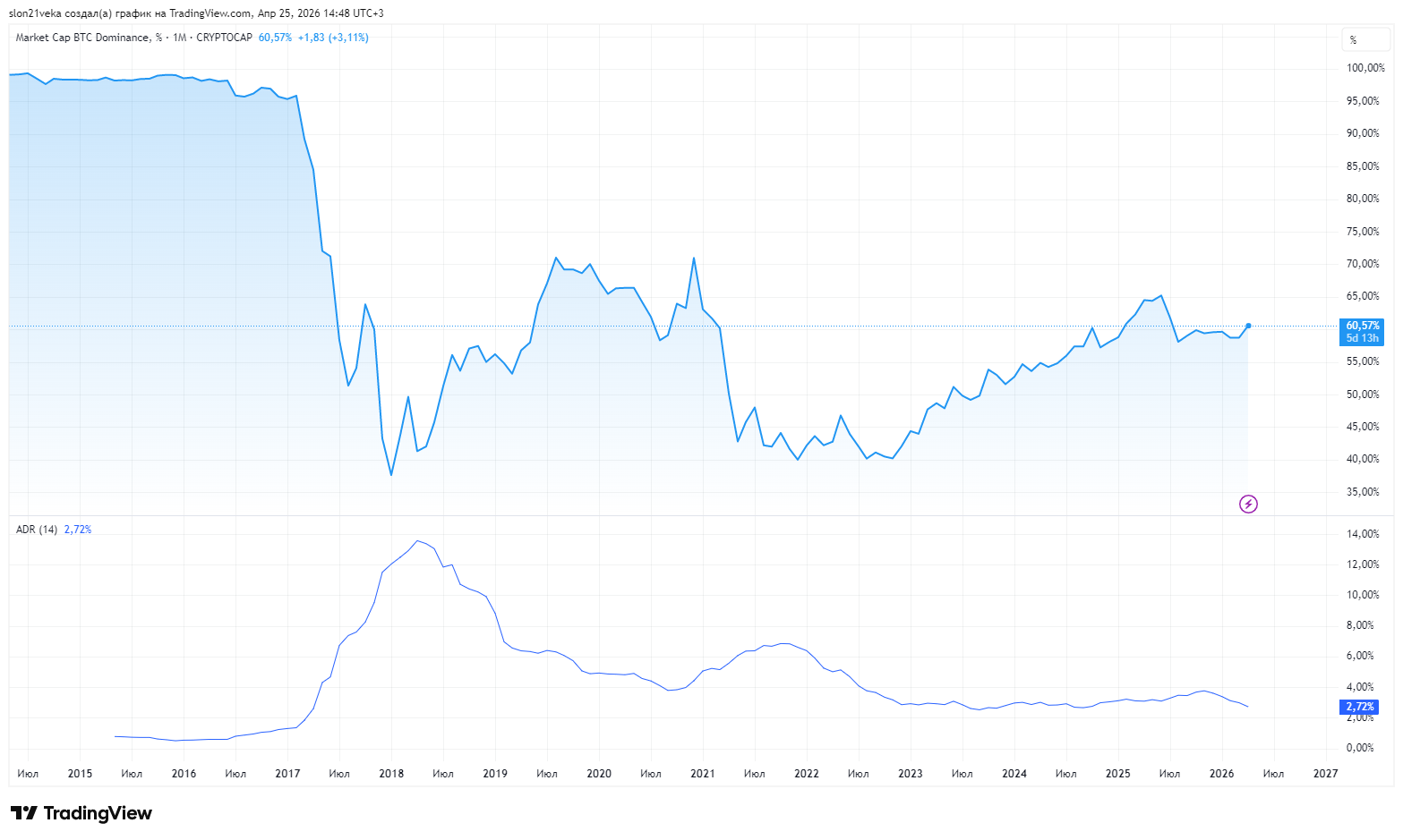 Ну и доминация биткоина опять берёт вверх...