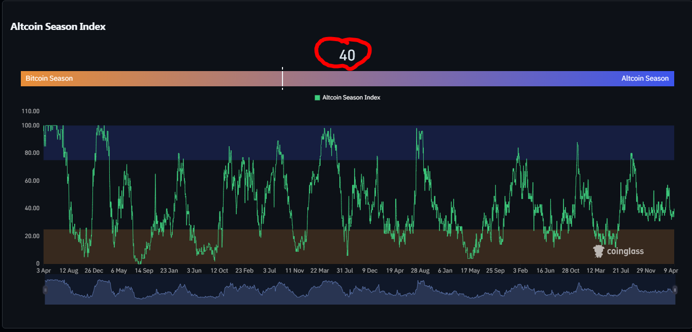 Индекс сезона альткоинов тоже поднялся чуть-чуть...