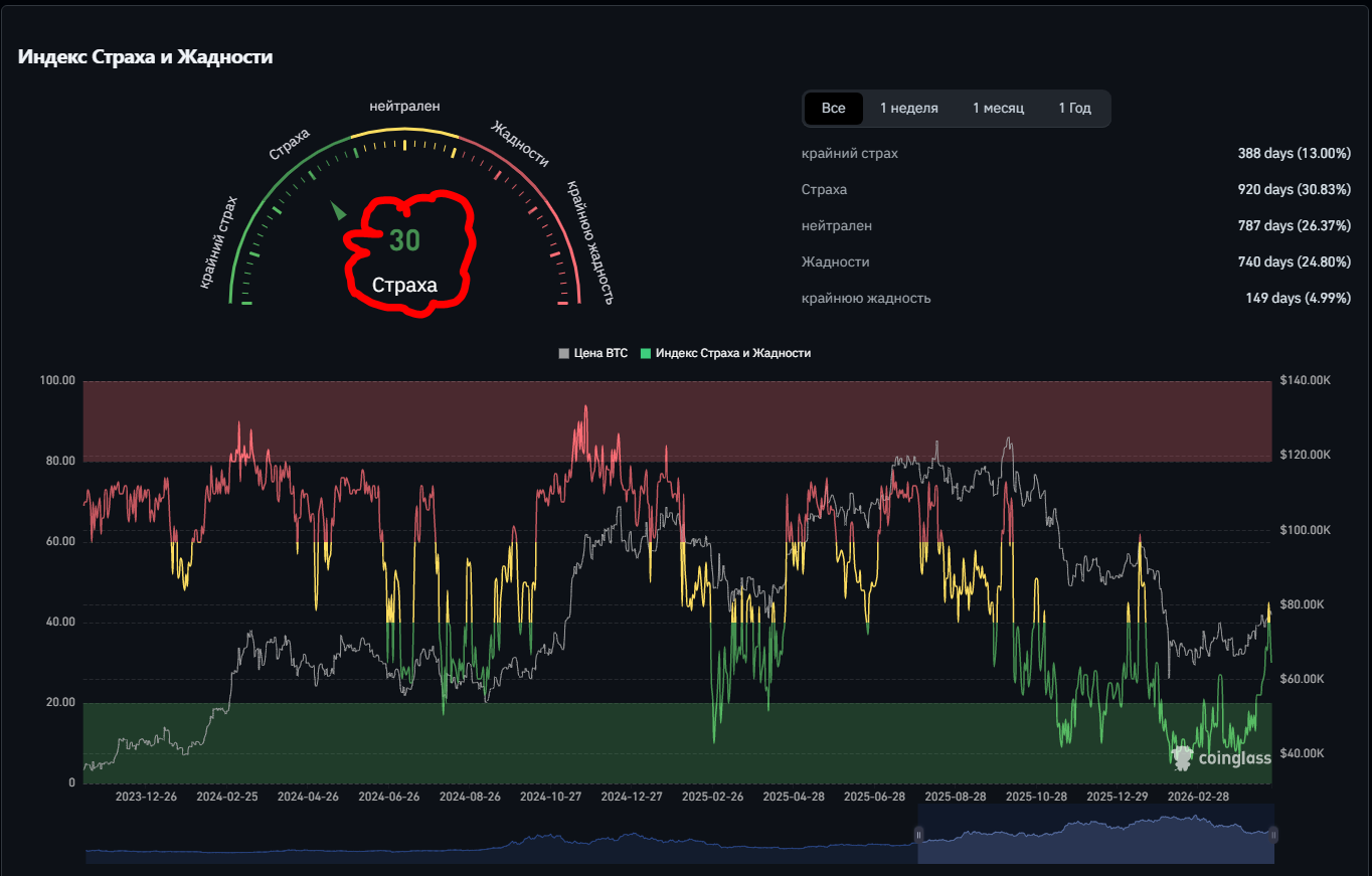 Индекс страха покинул рубеж крайнего страха...