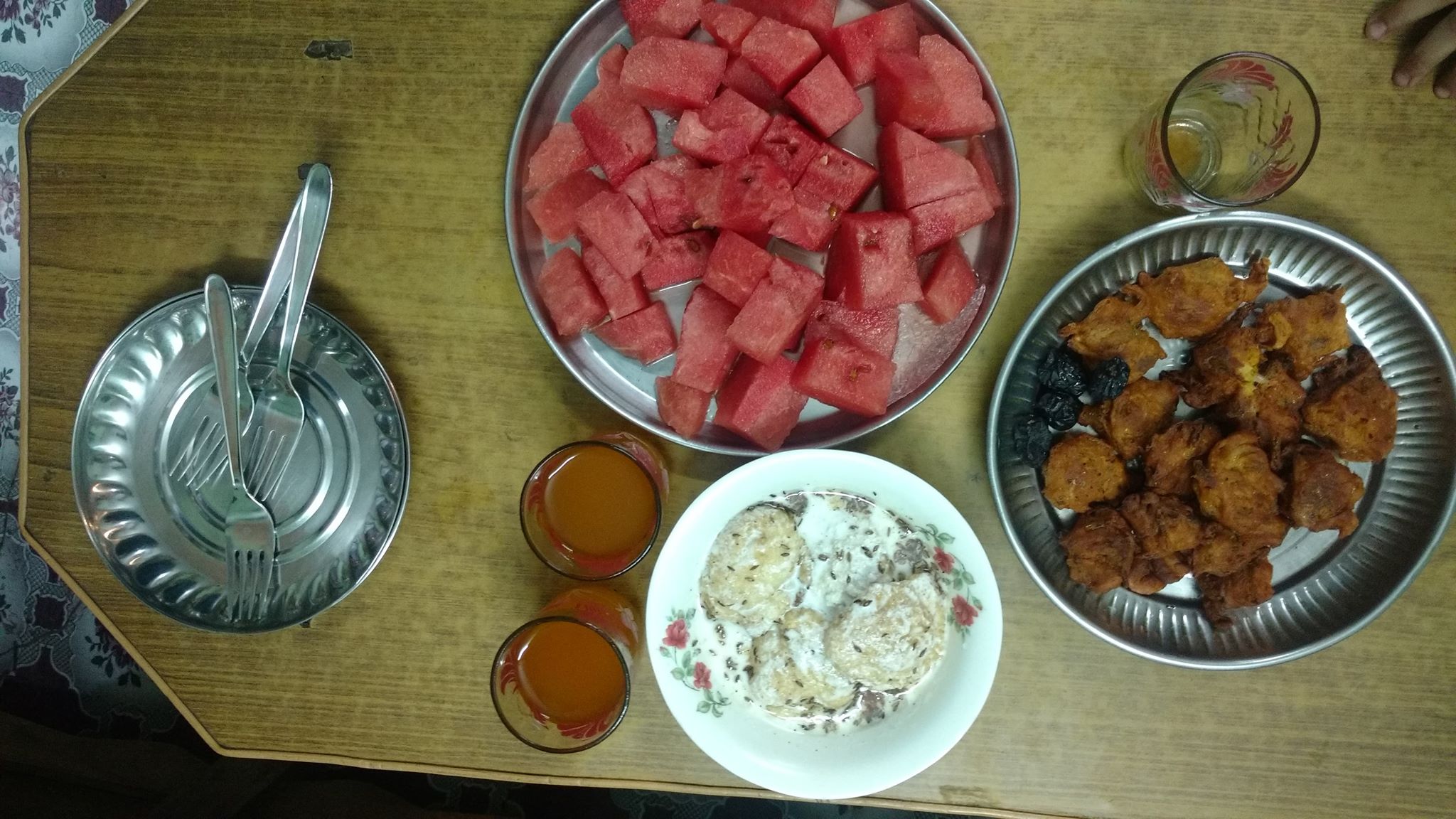 Todays simple iftariazizrock (56)in #snack • 8 years ago (edited) It contains watermelon orange jucec and onion bhajiyas #ramzan #iftari