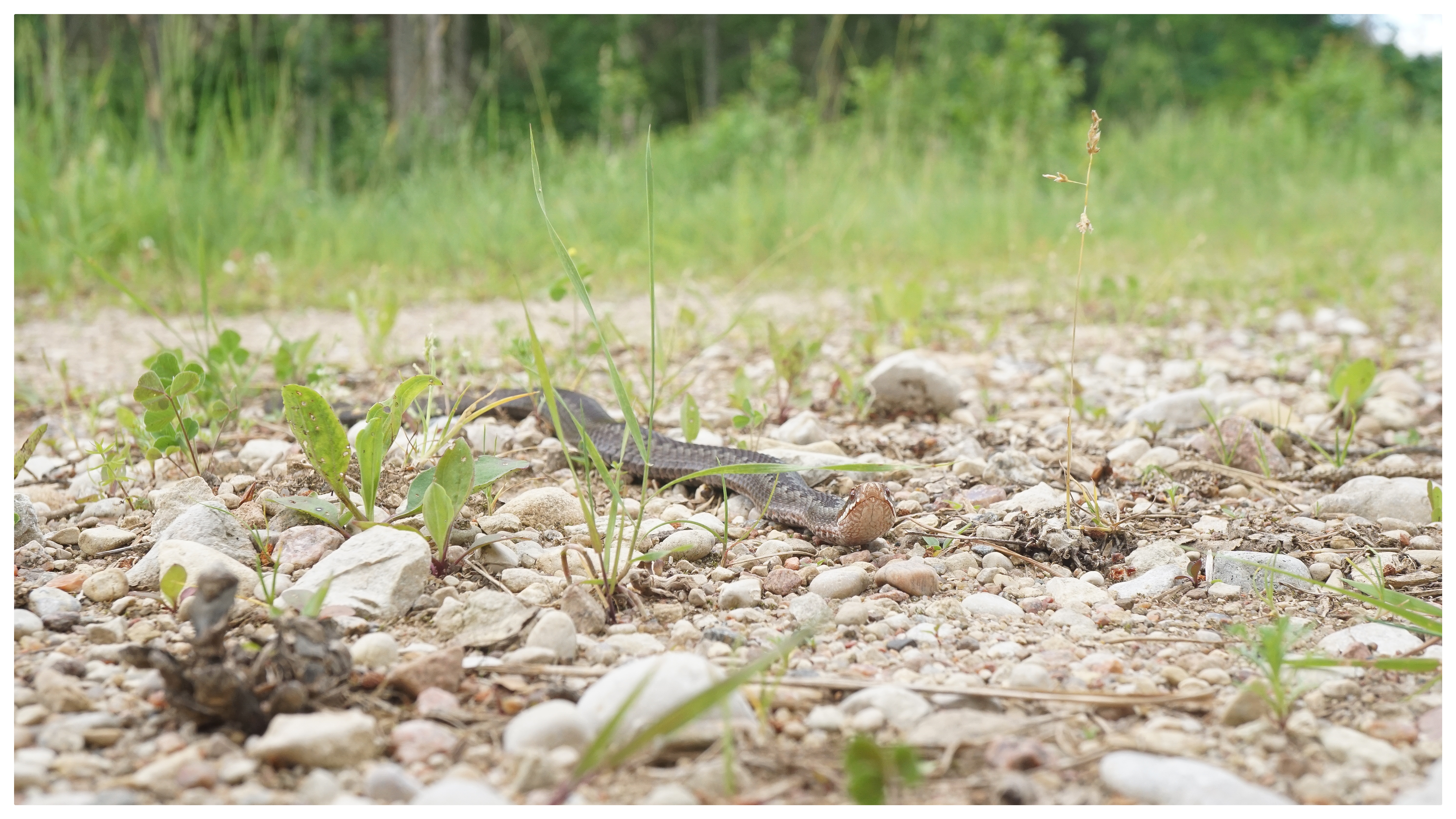 A light rainy summer day, I'm trying to find something interesting in this rainy weekend, here are the pictures of the snake, this snake just crawled towards me on the road, so I also took the opportunity to take pictures quickly.