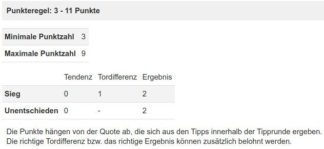 Hier noch ein Screenshot aus dem offiziellen Regelwerk kicktipps (wobei ich selbst die exakten Werte auswählte):