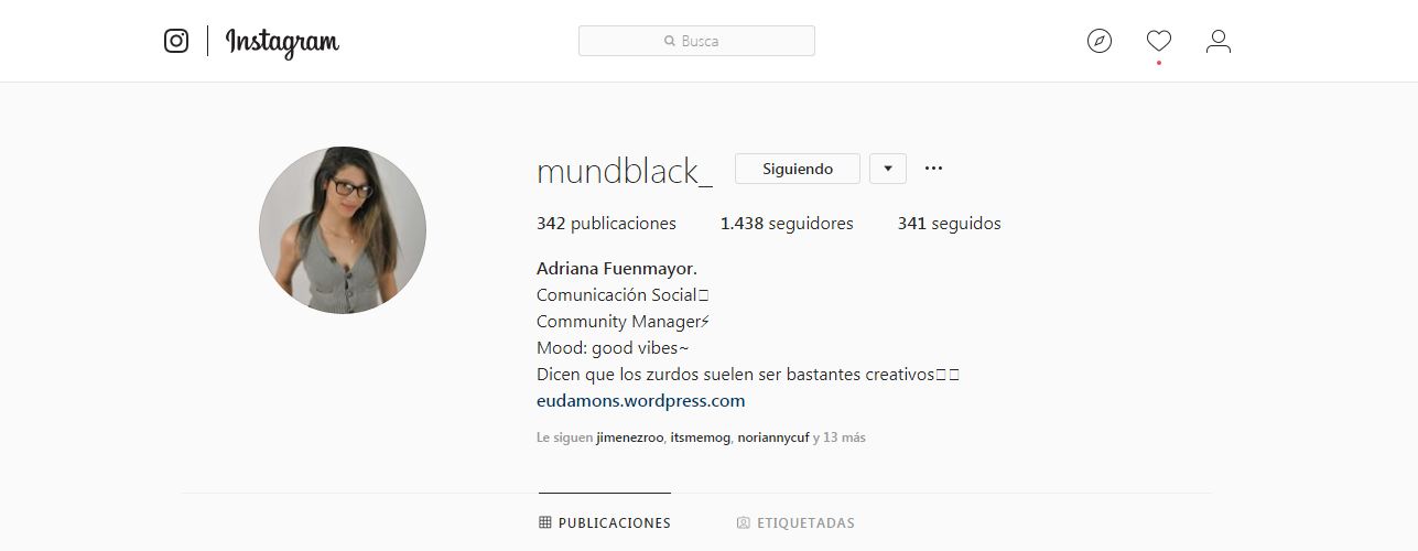 You can find me on Instagram by the username: @mundblack_ 1.438 are my followers and 341 are the ones I follow. Next to that there’s my real name and then my bio, so that people can know more about me and some of my qualities, the next link that you can see is from another blog where I like to write.