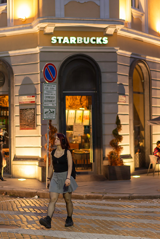 Night Sofiasvetoslavwradkov (41)in #sofia • 3 years ago Night Sofia, A young girl crosses a street with yellow cobblestones. Behind her is a Strabucks. The weather is crowded but not hot, pleasant coolness in the August heat. It's evening, romantic for walks, for meeting friends for love. #bulgaria #peopple #starbucks