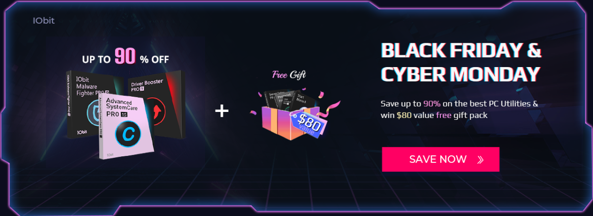 90% Off - IObit Software 2021 Black Friday & Cyber Monday Sales - As the craziest time of the year is approaching, we are so excited to launch our 2021 Black Friday & Cyber Monday Sales Campaign. get up to 90% Off on the best-selling PC & Mac Tune-up and security software, and claim a free $80 value gift pack with any purchase. Let's kick off this crazy shopping season and maximize your revenue with the best deal of the year!